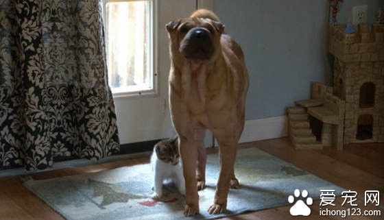 ▲小猫咪激起沙皮狗的母性。
